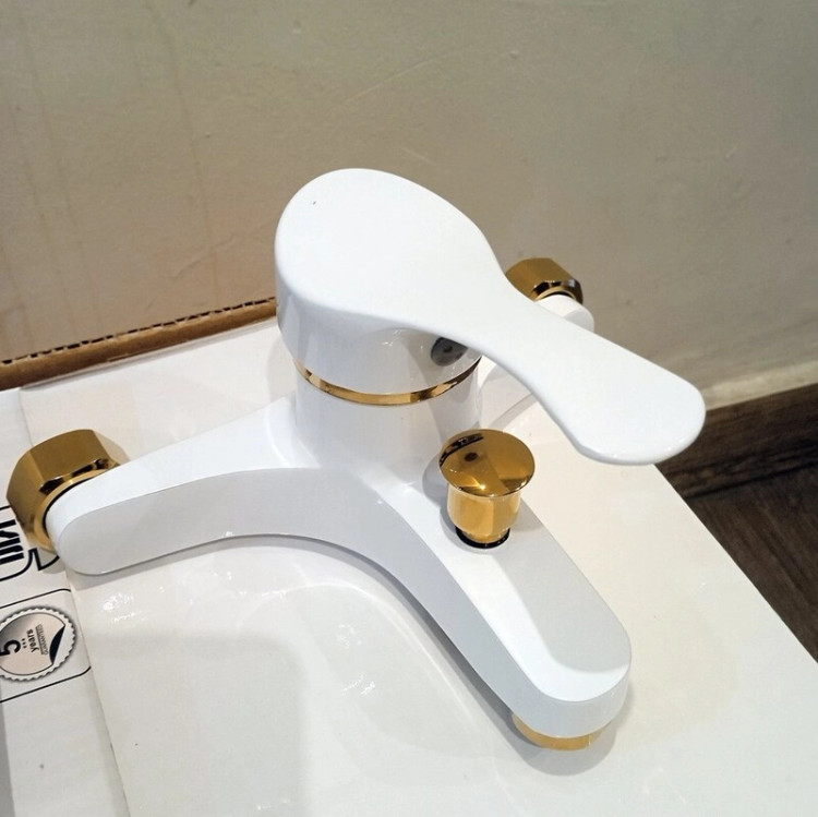 ست6عددی شیرآلات آیدا اهرمی دنیز با علم دوش سفیدطلایی دنیز
