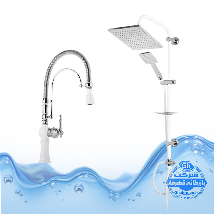 ست ۲ عددی شیر ظرفشویی مدل بیزانس تک منظوره و علم دوش یونیورست رسوب‌گیر اتومات | سفید کروم براق | شیرآلات برند آیدا صنعت مدل بیزانس
