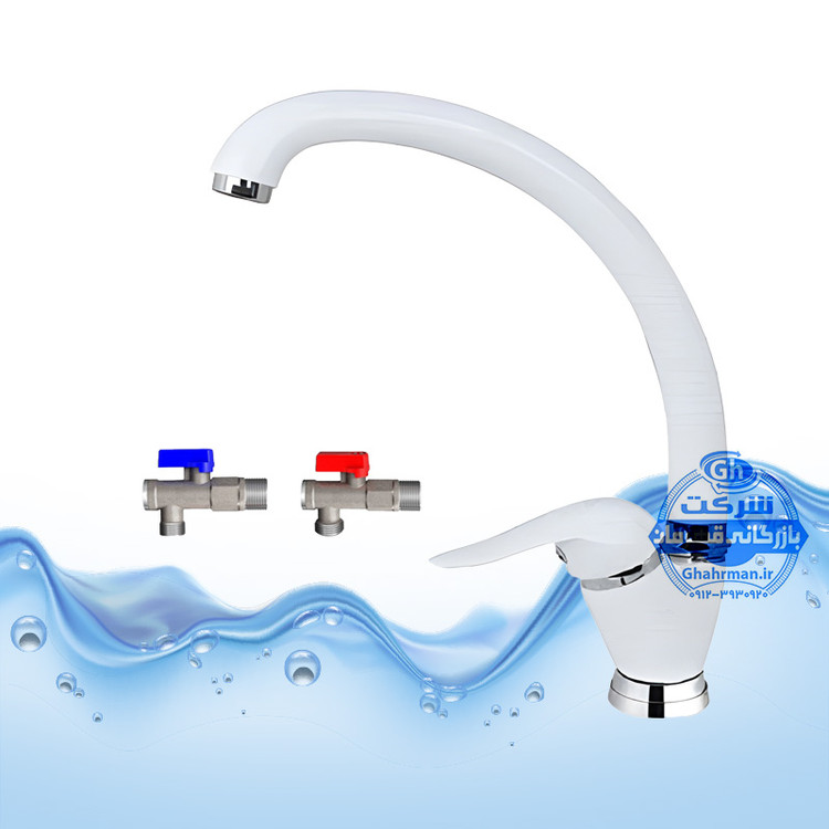 ست ۳ عددی شیر ظرفشویی سفید کروم براق به همراه شیر پیسوار | شیرآلات برند آیدا صنعت مدل دنیز