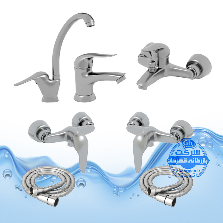 ست ۷ عددی شیرآلات برند آیدا صنعت مدل دنیز | ظرفشویی + روشویی + حمام + ۲ عدد توالت + ۲ عدد شلنگ توالت | کروم مات
