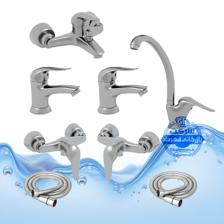 ست ۸ عددی شیرآلات برند آیدا صنعت مدل دنیز | شیر ظرفشویی + دو عدد روشویی + حمام + دو عدد توالت + دو شلنگ توالت | کروم مات
