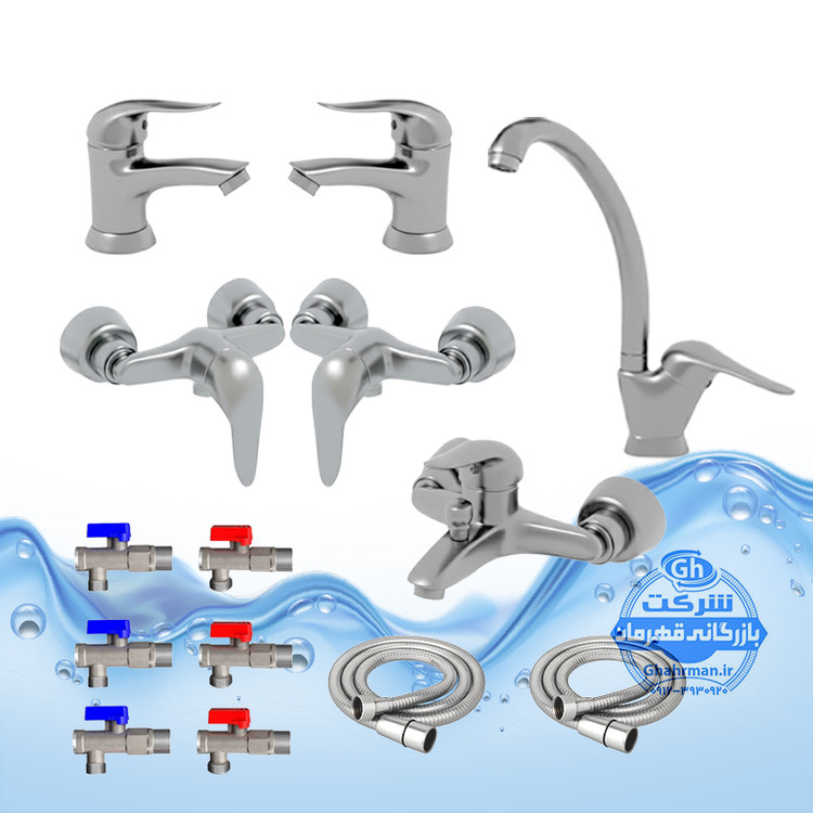 ست ۱۴ عددی شیرآلات برند آیدا صنعت مدل قهرمان اردکی | شیر ظرفشویی + دو عدد شیر روشویی + شیر حمام + شیر توالت + سه عدد شلنگ استیل + چهار عدد شیر پیسوار | کروم مات
