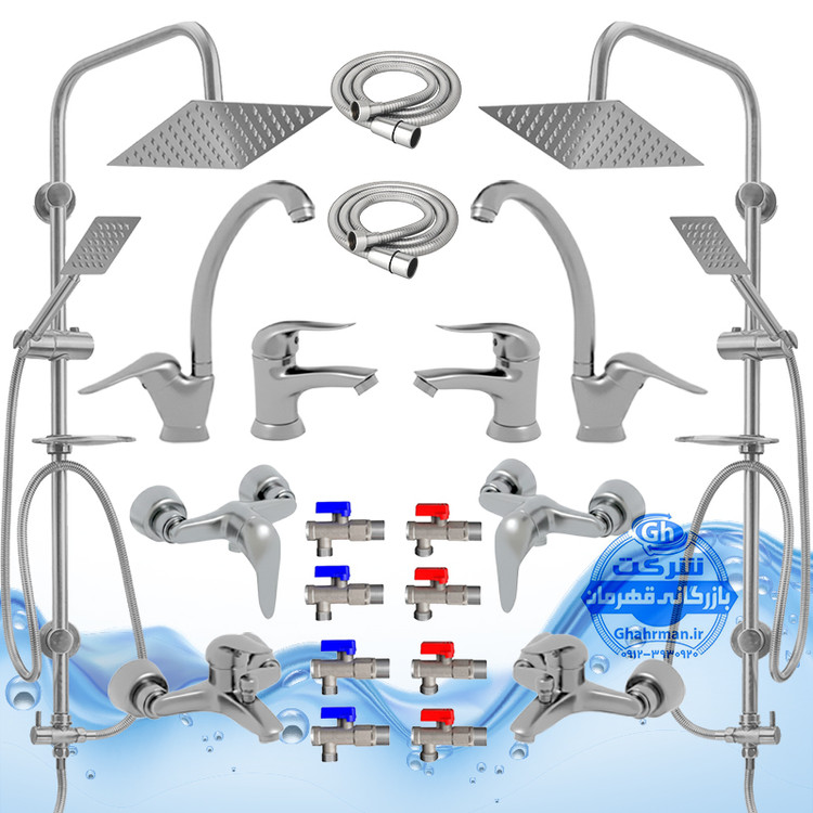 ست ۲۰ عددی شیرآلات برند آیدا صنعت مدل قهرمان اردکی | دو عدد شیر ظرفشویی + دو عدد شیر روشویی + دو عدد شیر حمام + دو عدد شیر توالت + دو عدد علم دوش یونیورست مدل صفحه استیل مربع + دو عدد شلنگ توالت + دو عدد شلنگ استیل + هشت عدد شیر پیسوار | کروم مات