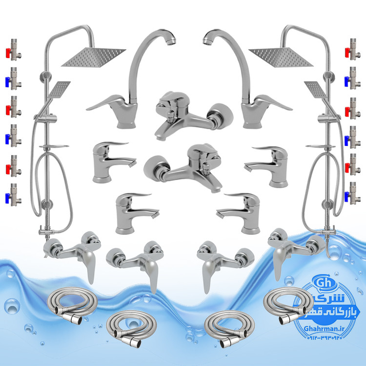ست ۳۰ عددی شیرآلات برند آیدا صنعت مدل قهرمان اردکی | سه عدد شیر ظرفشویی + سه عدد شیر روشویی + سه عدد شیر حمام + سه عدد شیر توالت + سه عدد علم دوش یونیورست مدل صفحه استیل + سه عدد شلنگ توالت + سه عدد شلنگ استیل + دوازده عدد شیر پیسوار | کروم مات
