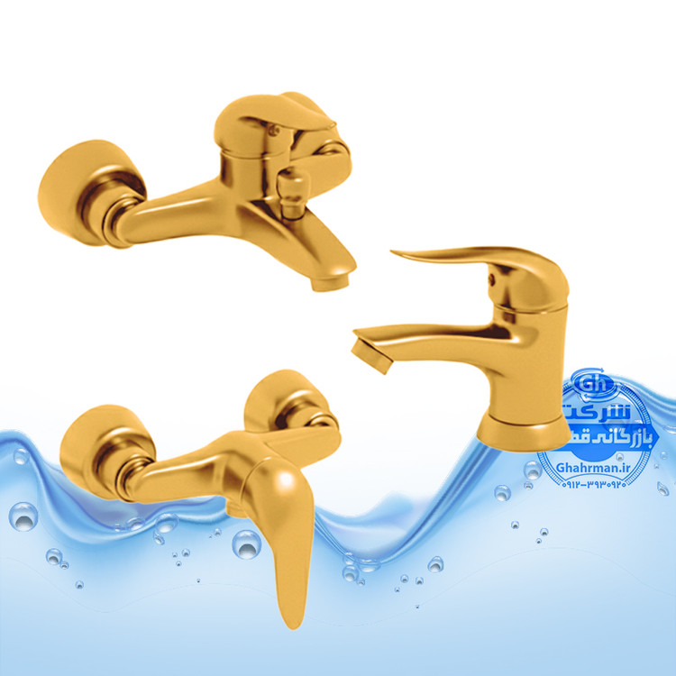 ست ۳ عددی شیرآلات برند آیدا صنعت مدل دنیز | شیر حمام + شیر توالت + شیر روشویی | طلایی مات