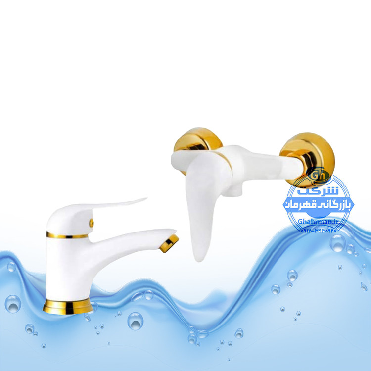 ست ۲ عددی شیر روشویی و شیر توالت اهرمی | سفید طلایی | شیرآلات برند آیدا صنعت مدل دنیز